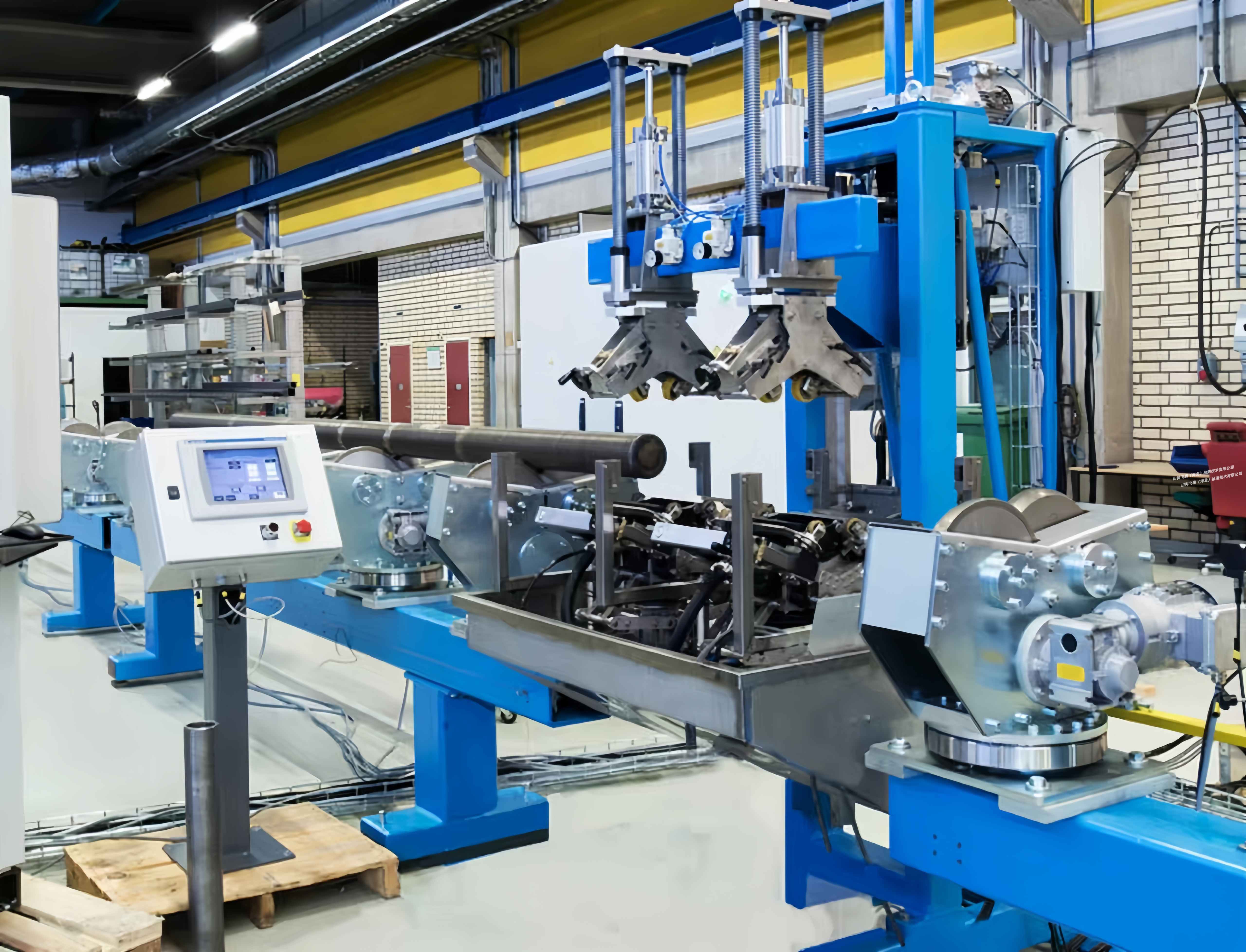 合金棒材超聲波自動探傷設備 本款設備為合金棒材自動探傷設備,棒材探傷采用橫進橫出超聲波檢測。
